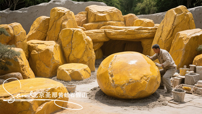 黃臘石假山在所有的假山中是難疊砌的,他的形狀大多和卵石相似,所以不適于做大型假山,只適合做小型的庭院假山,在做別墅假山時(shí)要精心挑選上下有平面的適用于堆砌的石料,由于黃蠟石在后被開采之前所處環(huán)境有很大差別,有水溝中直接開采的、有土埋的,所以黃蠟石的品相差別很大。
